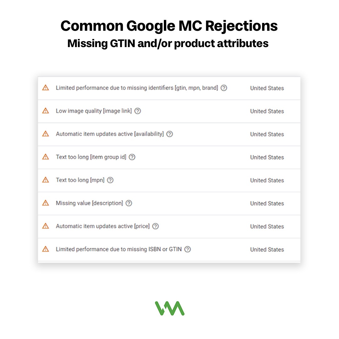 Google needs specific information about each product to show it to the right customers. When that data is missing or incorrect, you'll get disapprovals.