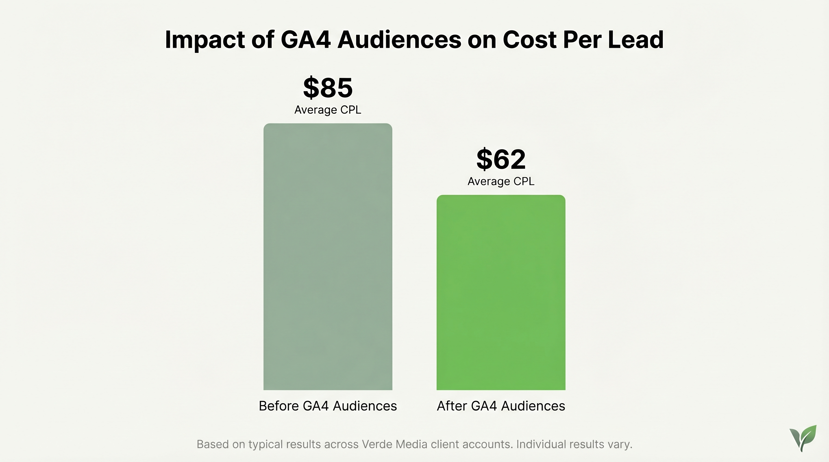 We're not going to promise you'll cut your cost per lead in half overnight. What we typically see with clients who implement GA4 audiences properly is a 15–25% improvement in cost per acquisition within the first 60–90 days. That's not a small number — on a $5,000/month budget, that's $750–$1,250 in monthly savings or, more accurately, budget that's now working instead of being wasted.