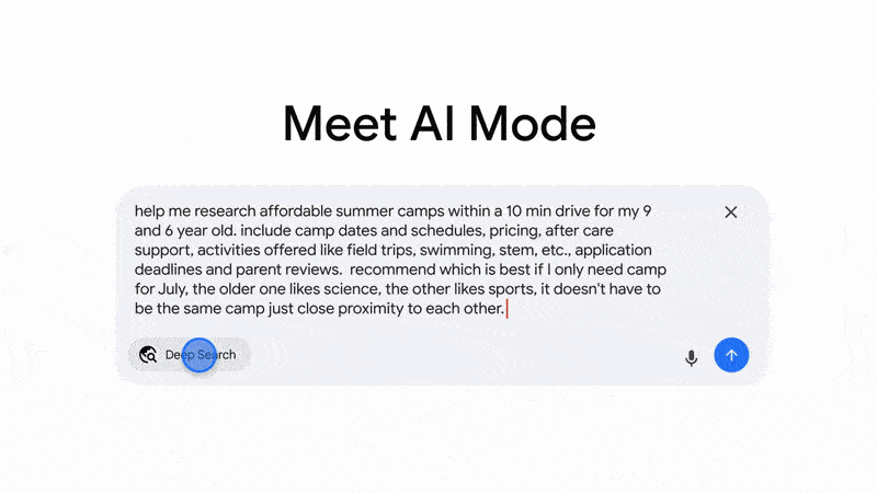 Think of AI Mode as Google's answer to ChatGPT, but with access to the entire web and real-time information. Instead of giving you a list of websites to visit, AI Mode gives you direct, comprehensive answers to your questions.
